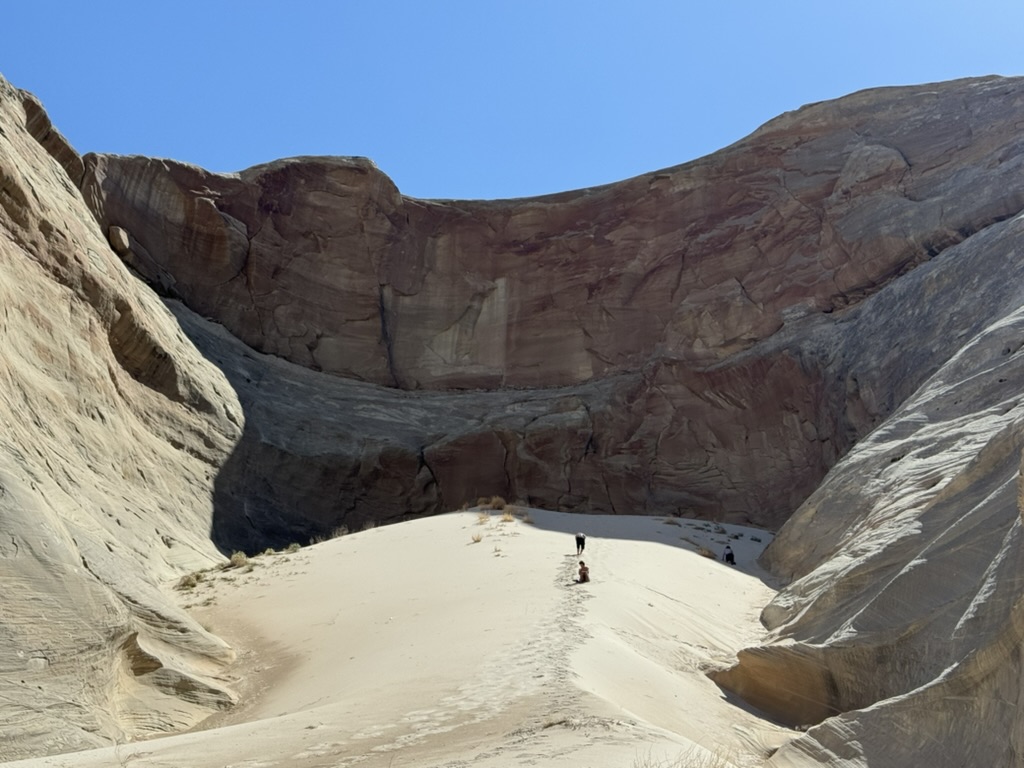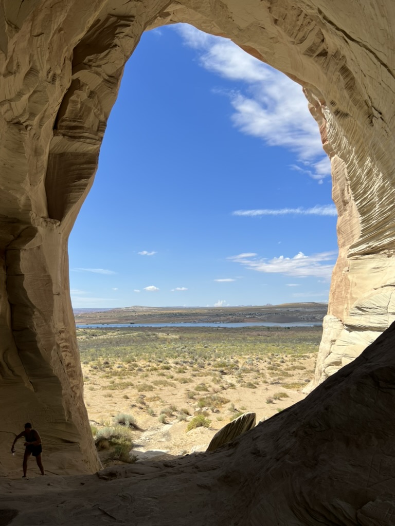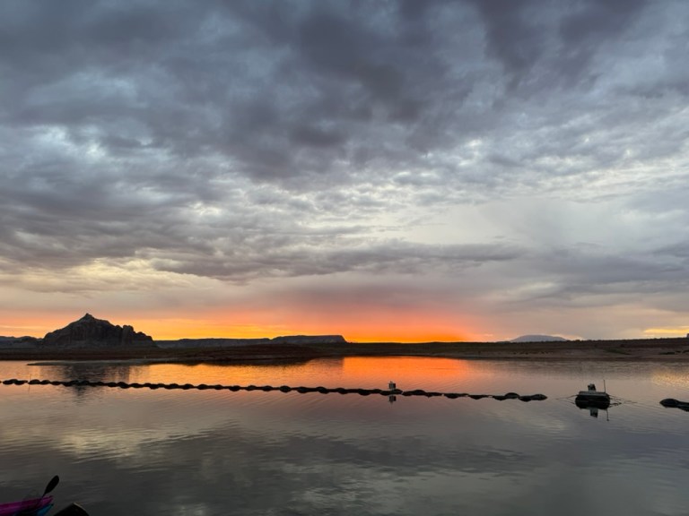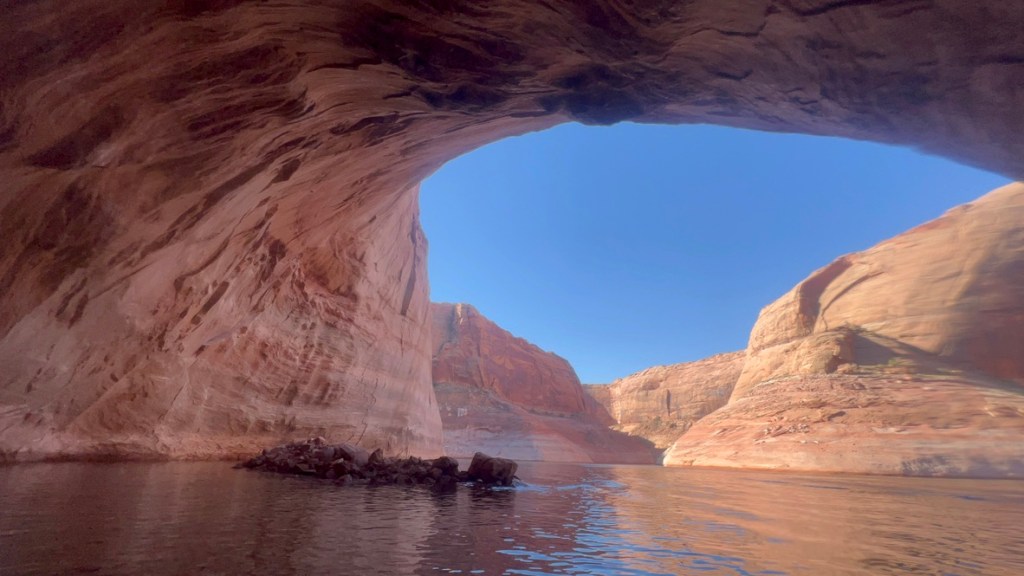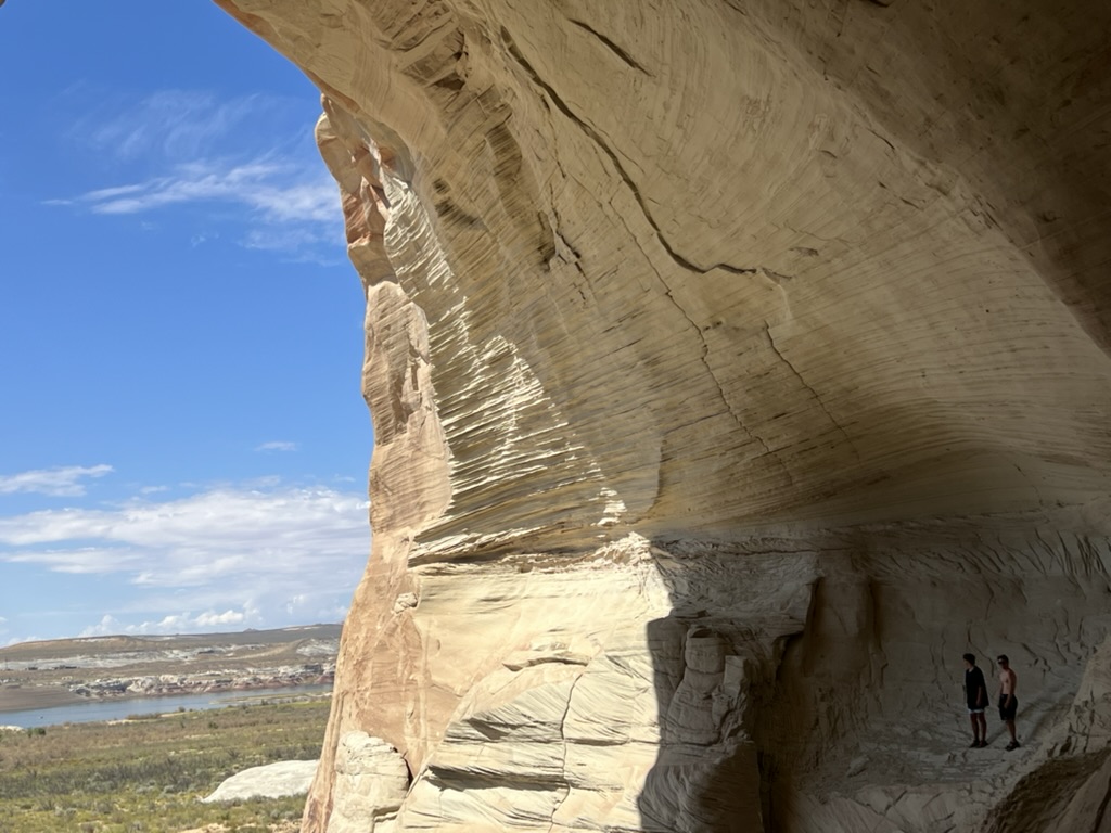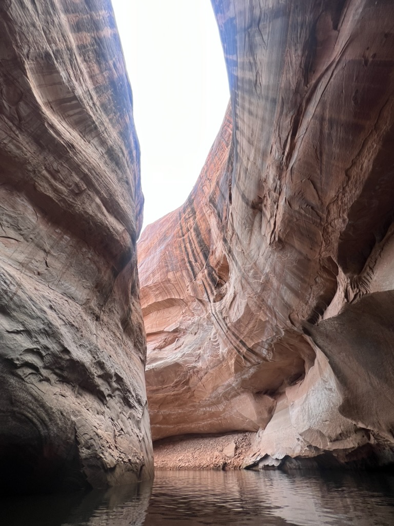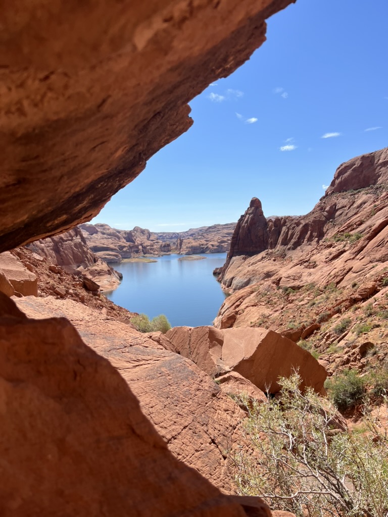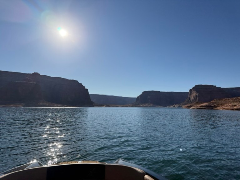 This is Wahweap Marina, not far from Page, AZ, and where our boat is moored. If you look really closely on the far right, you can see it. 😉 The Colorado didn’t go through this area directly, rather Wahweap Bay is flood waters from the dam.